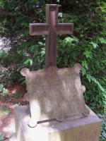 Eisenkreuz mit Tafel auf Steinsockel, Inschrift: verwundet bei Wörth d. 6. August 1870