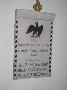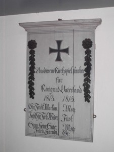 Tafel 1815:“Aus diesem Kirchspiel starben für König und Vaterland 1813 . 1815“