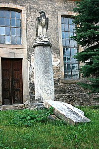 Wüllersleben, Gemeinde Bösleben-Wüllersleben, Ilm-Kreis, ThüringenPLZ 99310 Vor der Kirche steht die Stele für Gefallene des 1. Weltkrieges. Die Namen wurden in die Säule umlaufend eingraviert. Es sind jedoch nur noch Fragmente von Jahreszahlen lesbar.