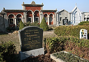 Auf dem Friedhof befindet sich eine Kriegsgräberstätte mit Stele und eingezäunten Areal sowie familiäre Gedenken.
