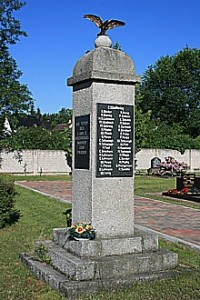 Stele auf dem Friedhof Das Denkmal entstand in den 1920er Jahren und hatte seinen Standort vor der Kirche. Diese wurde im 2.Weltkrieg zerstört und das Denkmal zum Friedhof nahe der Kriegsgräberstätte umgesetzt.