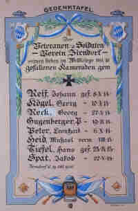 Der Veteranen- & Soldaten- Verein Zirndorf seinen lieben im Weltkriege 1914/18 gefallenen Kameraden gew.