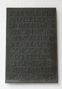 1. Zum Gedenken an alle, die aus den beiden Weltkriegen nicht heimgekehrt sind und deren Schicksal im Dunkel der Ungewissheit verblieben ist. 1914/18 1939/45