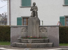 Bei der Kirche; mittlerer Teil erhöht, oben mit knieendem Soldaten; zusätzlich Hinweise zu Soldaten von