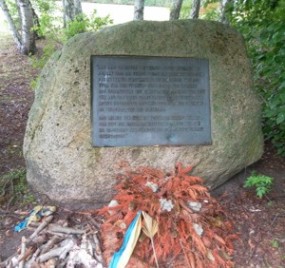 Gedenkstätte Opfer des Nationalsozialismus: „Auf dem gegenüberliegenden Platz bestand von August 1944 bis Februar 1945 ein Außenkommando des Konzentrationslagers Neuengamme. Von den etwa 500 Inhaftierten starben 49. Sie erlagen den unmenschlichen Bedingungen der Zwangsarbeit für den Bau eines Kraftwerkes. Ihre Gedenk– und letzte Ruhestätte befindet sich auf dem Friedhof im benachbarten Ort Barskamp. Das Leiden und Sterben dieser Menschen während der Zeit des Nationalsozialismus mahnt uns, nie zu vergessen und für Frieden und Menschlichkeit einzutreten.“