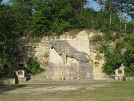 Bad Kösen (Rudelsburg-Corpsstudenten), Burgenlandkreis, Sachsen-AnhaltPLZ 06628 Folgt man dem Unstrutradweg gelangt man unterhalb der Rudelsburg zu einem großen Platz, auf dessen einer Seite man ins Tal blicken kann, dessen andere Seite aber durch eine steile Abbruchkante begrenzt wird. Vor dieser Wand wurde ca. 5 Meter hohe Mauer gesetzt, die einen brüllenden Löwen im Profil zeigt. Rechts und links dieser Mauer stehen zwei kleine Podeste, die oben eine Feuerschale tragen und vorne eine Metallplatte mit den Inschriften tragen.