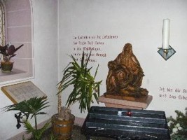 In der Kirche St. Laurenzius befindet sich in einer Ecke neben dem Eingang unter einem Fenster die Gedenktafel. Daneben eine Holzschnitzerei die eine Sterbeszene darstellt.