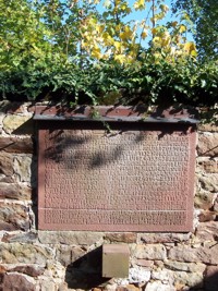 Hinter der Kirche, an der Friedhofsmauer befindet sich eine Gedenktafel aus Sandstein. Sie trägt die Namen der in den beiden Weltkriegen gefallenen und vermissten Soldaten der Gemeinde.