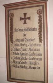 Tafel 1. Weltkrieg: Aus diesem Kirchspiel starben den Heldentod für unser Vaterland (Namen)