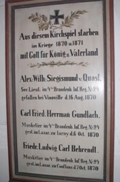 Tafel 1870/71: Aus diesem Kirchspiel starben im Kriege 1870 und 1871 für König und Vaterland
