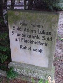 Kriegsgrab 2: Hier ruhen Soldat Adem Lulies, 2 unbekannte Soldaten und 1 Flakhelferin. Ruhet sanft