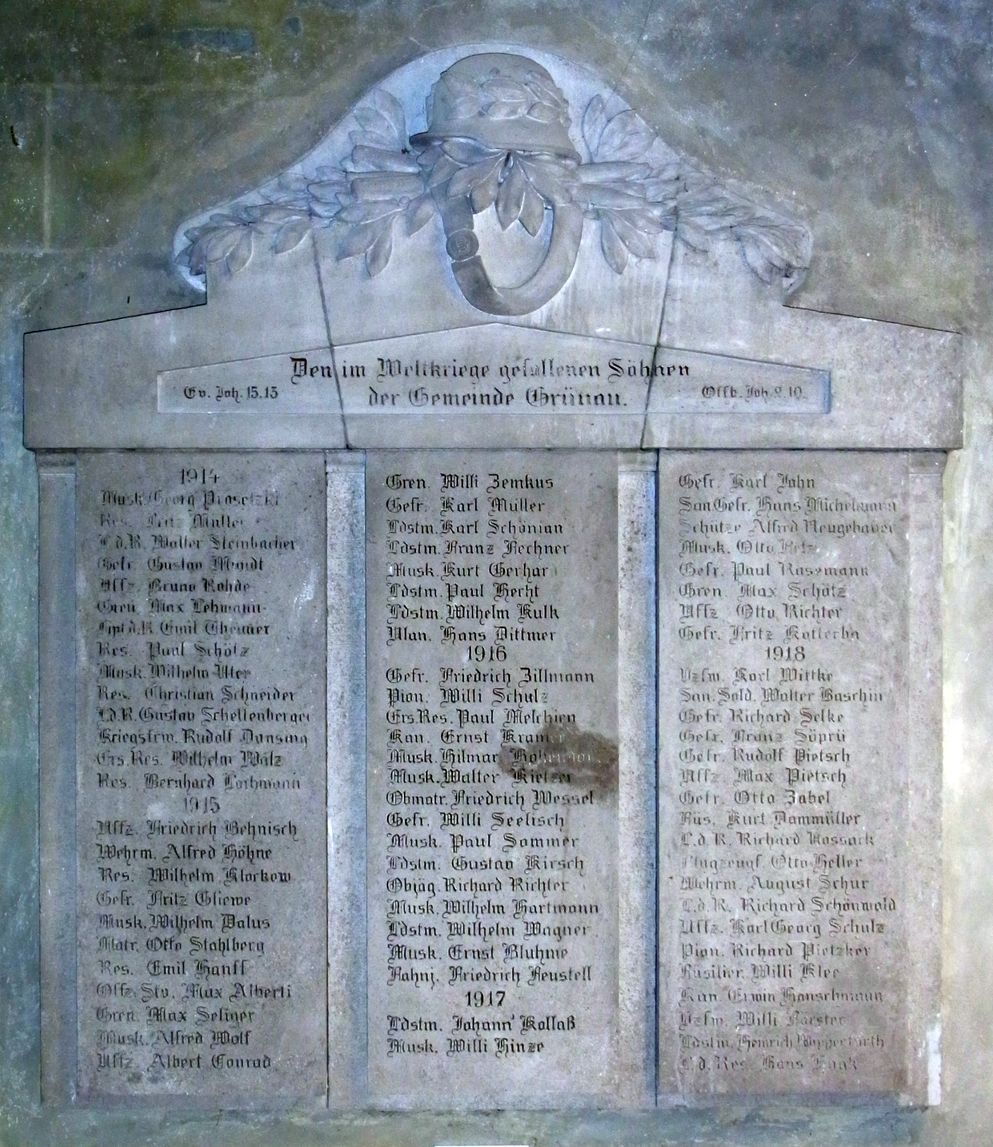 Kirche: Den im Weltkriege gefallenen Söhnen der Gemeinde Grünau Friedhof: