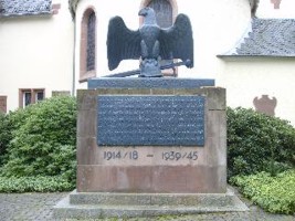 An der evang. Kirche befindet sich das Kriegerdenkmal. Eine aus Sandsteinen bestehende Wand. Mit einem Adler der auf einem Stahlhelm mit Schwert sitzt und seine Schwingen ausbreitet. Vorne eine Namenstafel aus Metall (1. WK). An den beiden Seiten jeweils eine Namenstafel aus Metall (2. WK)