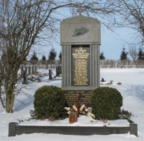 Das Denkmal steht auf dem Friedhof. Zwischen zwei stilisierten Säulen ist eine schwarze Marmorplatte mit den Namen der Gefallenen des 1.WK´s angebracht. Am Fuß des Denkmals ist eine weitere Platte angebracht. Sie trägt die Namen der Gefallenen und Vermißten des 2.WK´s.