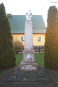 Stele in der Ortsmitte. Im November 1920 bildete sich ein Denkmalausschuss, der in kurzer Zeit 7500 Reichsmark