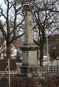 an der Ecke Rotenzimmernstr./Hauptstrasse: quadratische Säule, oben mit Adler