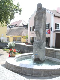 Denkmalsanlage aus Granitsteinen im Ortszentrum. Tiefer gelegte Anlage mit Springbrunnen und mittig eine Säule mit lebensgroßer Marienfigur, die den Heiland im Schoß hält. Entlang der Außenmauer die Namenstafeln mit den Kriegsopfern. Blumenbepflanzung, als Dekor.