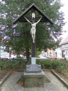 Hochkreuz in Ortsmitte: Wir gedenken der Gefallenen und der Toten beider Weltkriege und trauern um alle Opfer ungerechter Gewalt.