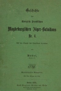 Buch: Die Geschichte des Königlich Preußischen Magdeburgischen Jäger-Bataillons Nr. 4 Auf den Wunsch des Bataillons bearbeitet von Model, Major a.D., Berlin 1895