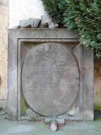 Gedenkstein an der Rückseite der Kirche nahe des Gräberfeldes der Toten des 2. Weltkriegs