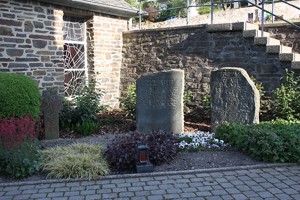 Denkmal: bei der Kirche; zwei aufrechte Gedenksteine