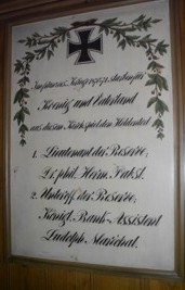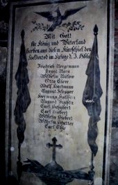 Gedenktafel für Teilnehmer des Krieges 1813-1815 „durch Vererbung“ ist unklar (Erklärungen dazu werden erbeten).