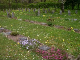 Die Kriegsgräberstätte auf dem Gelände des alten Friedhofs besteht aus einer Deutschen Hälfte ohne jegliche