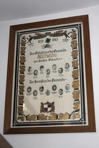 in der Kirche; Gedenktafel mit Fotos an der Wand