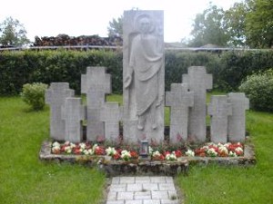 Auf dem Friedhof befindet sich das Kriegerdenkmal aus Stein. In der Mitte eine Figur. Daneben angeordnet insgesamt 8 Kreuze.