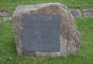 Allmendshofen (Ehrenfriedhof: Heimatvertriebene), Stadt Donaueschingen, Schwarzwald-Baar-Kreis, Baden-WürttembergPLZ 78166 Stadtteil Allmendshofen; im Ehrenfriedhof; Naturstein mit Gedenktafeln in der Nähe vom Rundturm