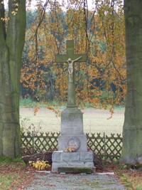Dreikirchen (Friedhof), Westerwaldkreis, Rheinland-PfalzPLZ 56414 In einem kleinen, an der Straße gelegenen Friedhof steht zwischen zwei alten Buchenbäumen ein steinernes Kruzifix auf einem Sockel. Das Denkmal erinnert an die im 1. Weltkrieg gefallenen Soldaten der Gemeinde. Außer einem Schriftzug und den Namen der drei Gefallenen befinden sich auf dem Sockel ein Ehrenkreuz und ein Helm im Lorbeerkranz.