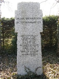 1945 – Verstorbenen aus Polen – finden sich auf einem übermannshohen hellgrauen Granitblock