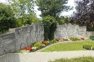 Das Kriegerdenkmal befindet sich auf dem Friedhof und ist in eine Abgrenzungsmauer integriert. Insgesamt 25 Steinkreuze sind um eine kleine Sterbeszene angeordnet.