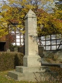 Neben der Kirche in Eitzum ein stumpfer Obelisk auf gestuftem Sockel als Ehrenmal für die Kriegstoten