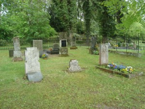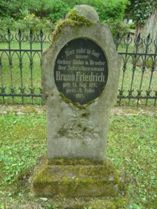 Grab des Soldaten: „Hier ruht in Frieden…“; Grabstein nahezu unleserlich, Nachname unklar