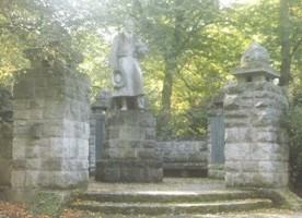 In einer Parkanlage, die zum Hauptfriedhof Eschwege führt, steht das kreisrunde Denkmal umgeben von hohen Bäumen. Quadermauern umrahmen einen begehbaren Innenraum mit zentraler Steinfigur auf Sockel. An den Innenwänden die Namen der Toten.