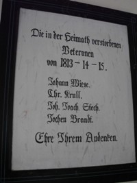 Gedenktafel 2: Die in der Heimath verstorbenen Veteranen (Namen) Ehre Ihrem Andenken