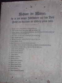 Gedenktafel 3: Nahmen der Männer, die in dem vorigen Jahrhundert aus dem Dorfe Ferbitz dem