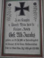 Blieb in der Schlacht bei Breslau,und ist der einzige der in hundert Jahren in diesem Dorfe vor dem Feinde geblieben ist