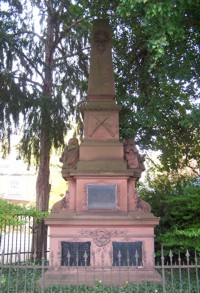Erinnerungstafel: ZUR ERINNERUNG AN DEN SIEGREICHEN FELDZUG 1870-71 WIDMETEN DIESE GEDENKTAFELN AM 2. SEPT. 1895 DIE FRAUEN UND JUNGFRAUEN FECHENHEIMS. 1. Namenstafel : COMBATTANTEN : 2. Namenstafel : NICHTCOMBATTANTEN :