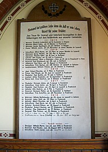 1. Tafel Aus diesem Kirchspiel starben für König und Vaterland (Namen) Vergiß die treuen Toten nicht!