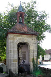 In einem gemauerten Marterl sind zwei Gedenktafeln angebracht