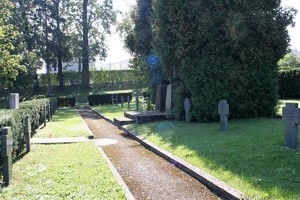 im Zentralfriedhof; Steinkreuze mit meist zwei Namen vorne und hinten, dazwischen Gedenksteine, in der Mitte Denkmal