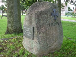 Die kleinen Gedenktafeln für die Gefallenen wurden an einem alten Gedenkstein befestigt der zum 100 jährigen Jubiläum der Befreiungskriege errichtet wurde und ein Eisernes Kreuz sowie die Zahlen „1813 1913“ aufweist. Zusätzliche Informationen in Blau vom Volksbund für Kriegsgräberfürsorge: www.volksbund.de