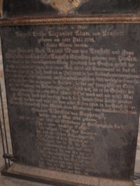 Tafel v. Arnstedt: Hier ruhet in Gott August Botho Alexander Adam von Arnstedt, geboren am
