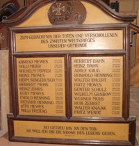Tafel 2.Weltkrieg: Zum Gedächtnis der Toten und Verschollenen des Zweiten Weltkrieges unserer Gemeinde. Sei