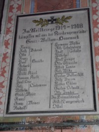Gedenktafel in der Kirche: Im Weltkriege 1914-1918 kämpften mit aus der Kirchengemeinde Gross-Wulkow-Havemark