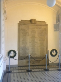 In einer Vorhalle des Altonaer Rathauses eine steinerne Gedenktafel für die 122 Kriegstoten des Ersten Weltkrieges, aufgeführt nach ihren Dienststellen. Eine weitere Tafel nennt die Namen von zwei Verordneten, die 1933 und 1934 Opfer des NS-Systems wurden.