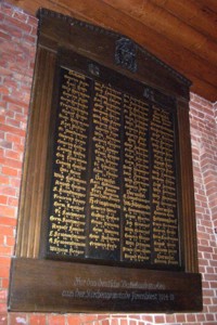 Ehrentafel in der ev.-luth. St. Johannis-Kirche in Herringhausen, zugehörig zum Gut Ahrenshorst.