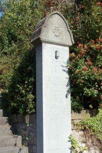 An der Treppe zwischen Rathausplatz zum Schloss mit Schinderhannesturm und Kirche steht das Denkmal für die Gefallenen des 1. Weltkrieges. Die Beschriftung auf dem älteren Kopfteil des Steines ist kaum noch lesbar.